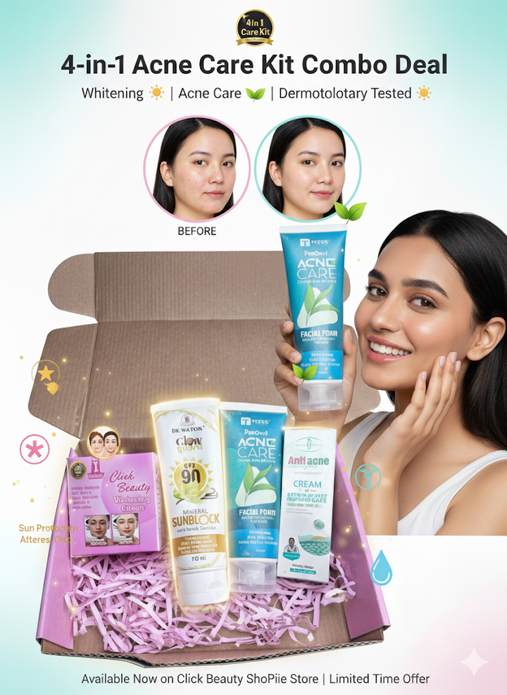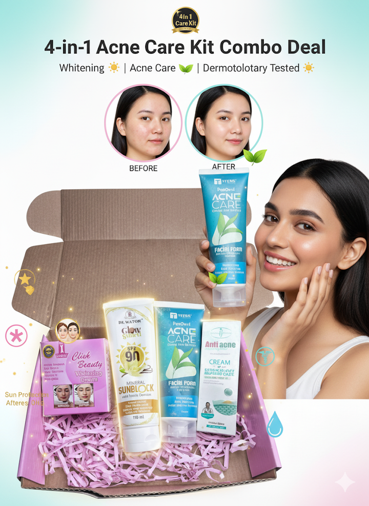 Tired of stubborn acne, blemishes, and uneven skin tone? We've created the ultimate, all-in-one skincare solution for you! This powerful 4-in-1 Combo Kit is designed to give you clean, glowing, and blemish-free skin. Stop searching for individual products—your complete routine is right here.
