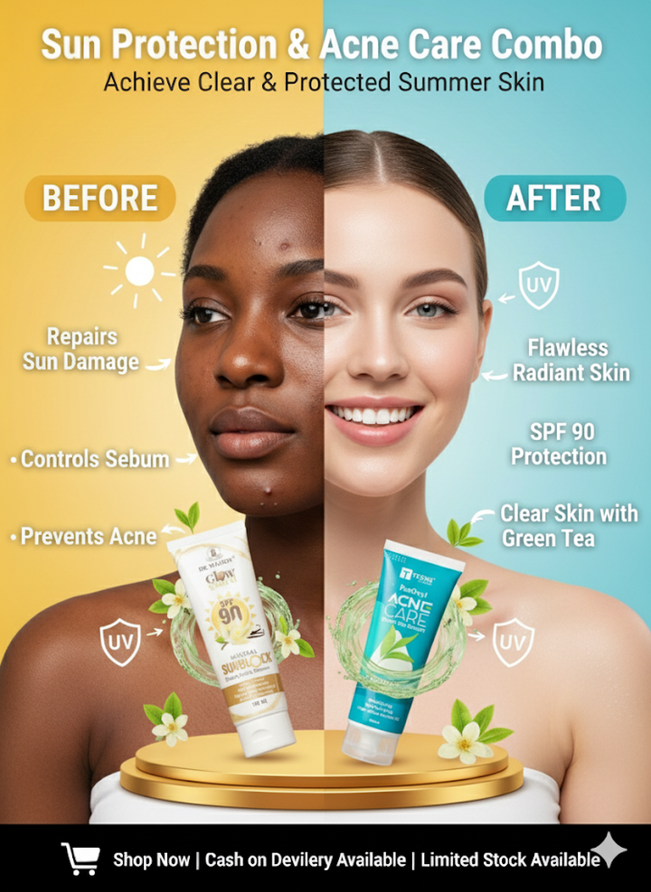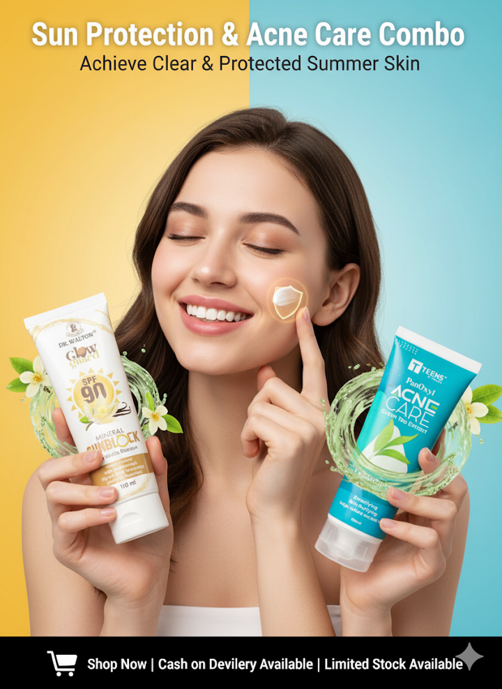 Protect your skin from the sun while keeping it clear and acne-free with our Sun Protection & Acne Care Combo! This powerful duo pairs the high-performance Dr. Walton Glow Guard Sunblock SPF 90 with the purifying PanOxyl Acne Care Facial Foam. It's the perfect solution for anyone who wants a healthy, blemish-free complexion that's fully protected from UV damage.