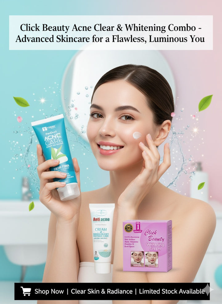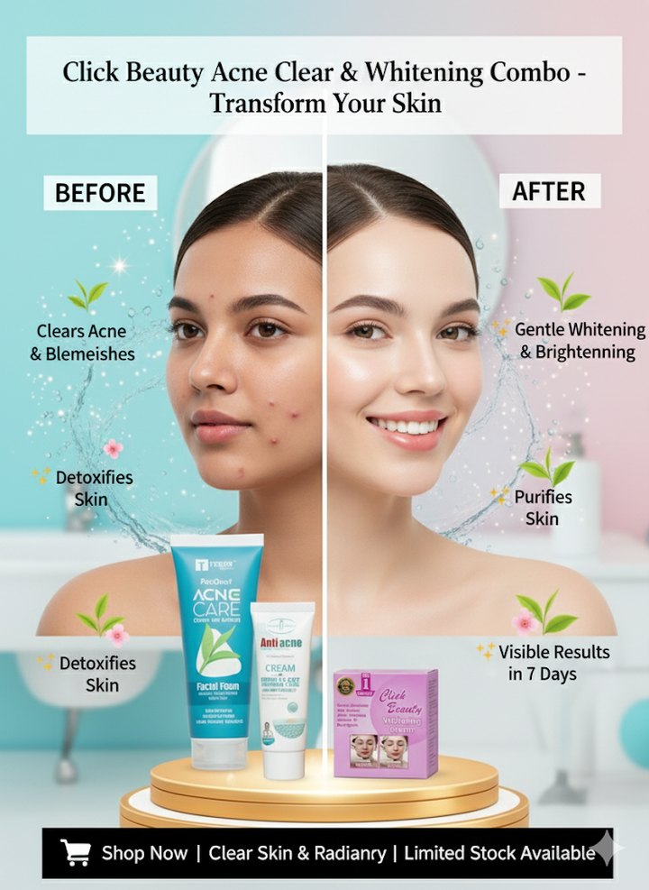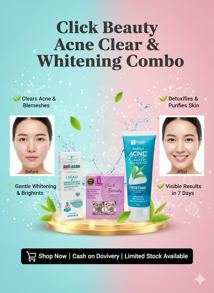 Get ready to achieve your clearest, brightest skin ever with the Click Beauty Acne Clear & Whitening Combo! This powerful 3-step system combines the proven acne-fighting power of PanOxyl and Aichun Beauty with the advanced whitening benefits of Click Beauty. Say goodbye to stubborn breakouts, dark spots, and uneven skin tone, and say hello to a radiant, flawless complexion.