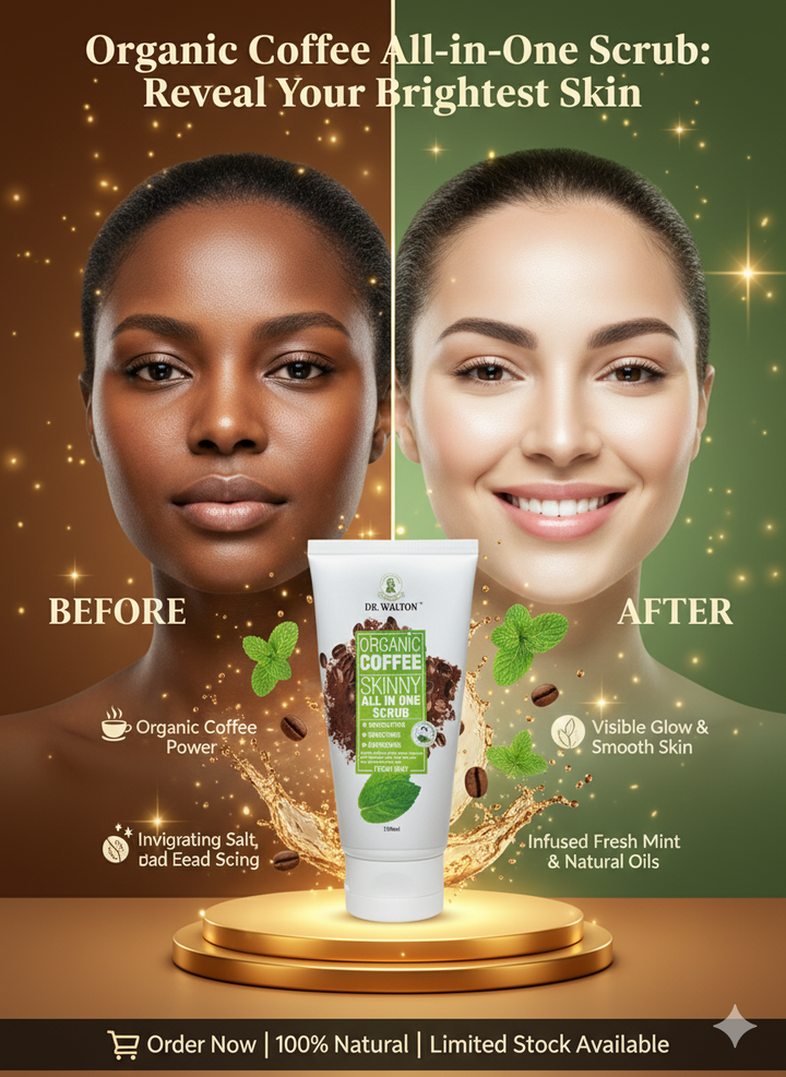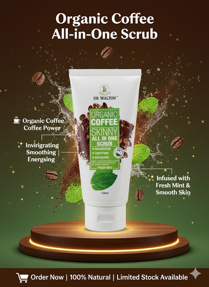 Get ready to wake up your skin with the invigorating power of coffee! Dr. Walton Organic Coffee Skinny All-in-One Scrub is more than just an exfoliator—it’s a complete skin treatment. Made with natural coffee grounds, fresh mint, and nourishing oils, this scrub works to buff away dead skin, reduce the appearance of cellulite, and leave your body feeling incredibly smooth and energized.
