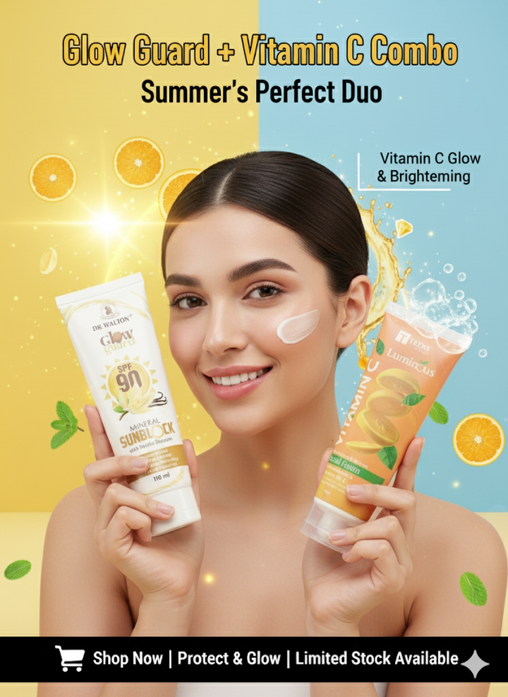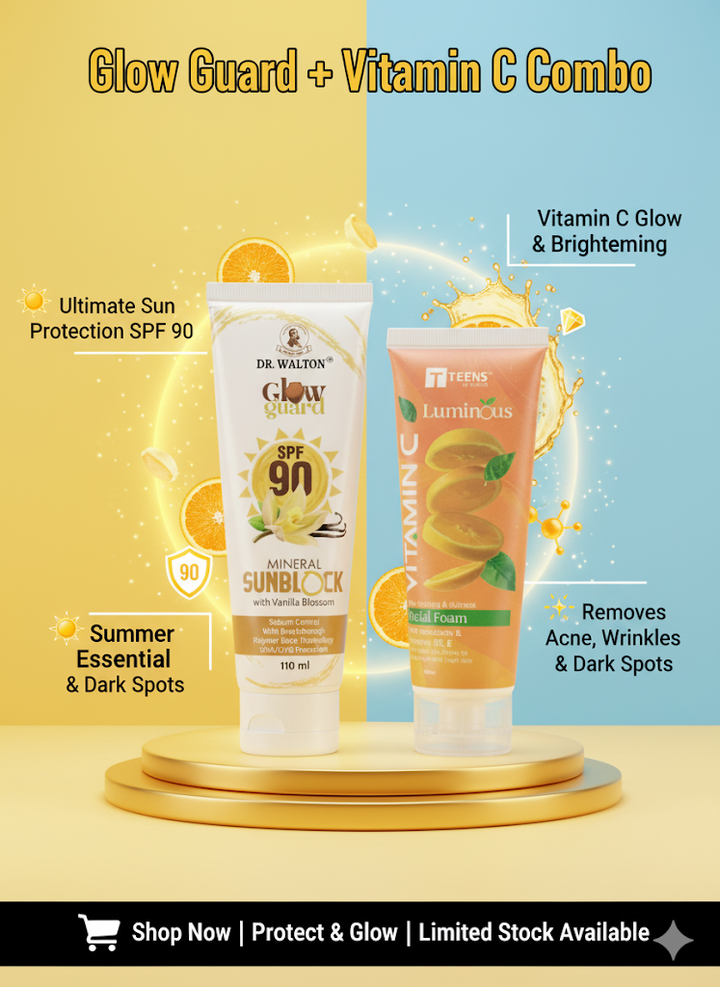 Get ready to protect your glow all summer long with the Glow Guard + Vitamin C Combo! This ultimate duo pairs the powerful Dr. Walton Glow Guard Sunblock SPF 90 with the refreshing Vitamin C Facial Foam. Together, they offer a complete solution for a bright, protected, and healthy-looking complexion. Say goodbye to sun damage and hello to your most radiant skin.